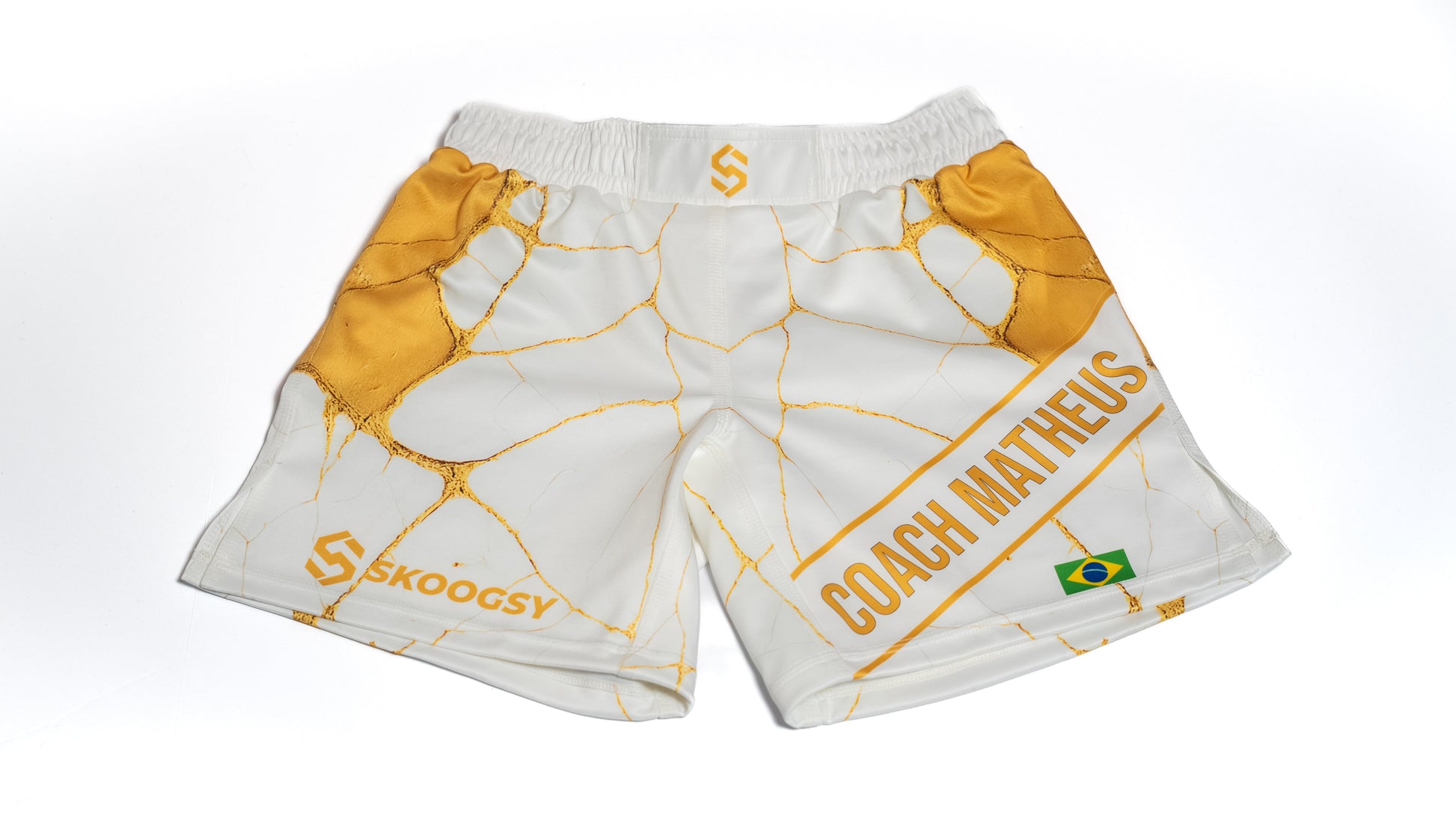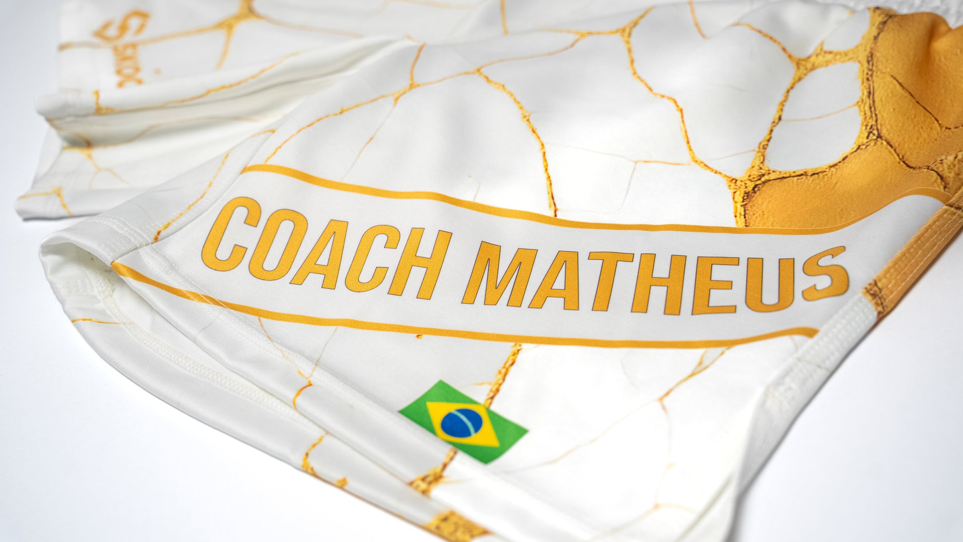 Add your name/word on the left leg, choose a flag, and upload sponsor or gym logos. We place everything cleanly for the best look.