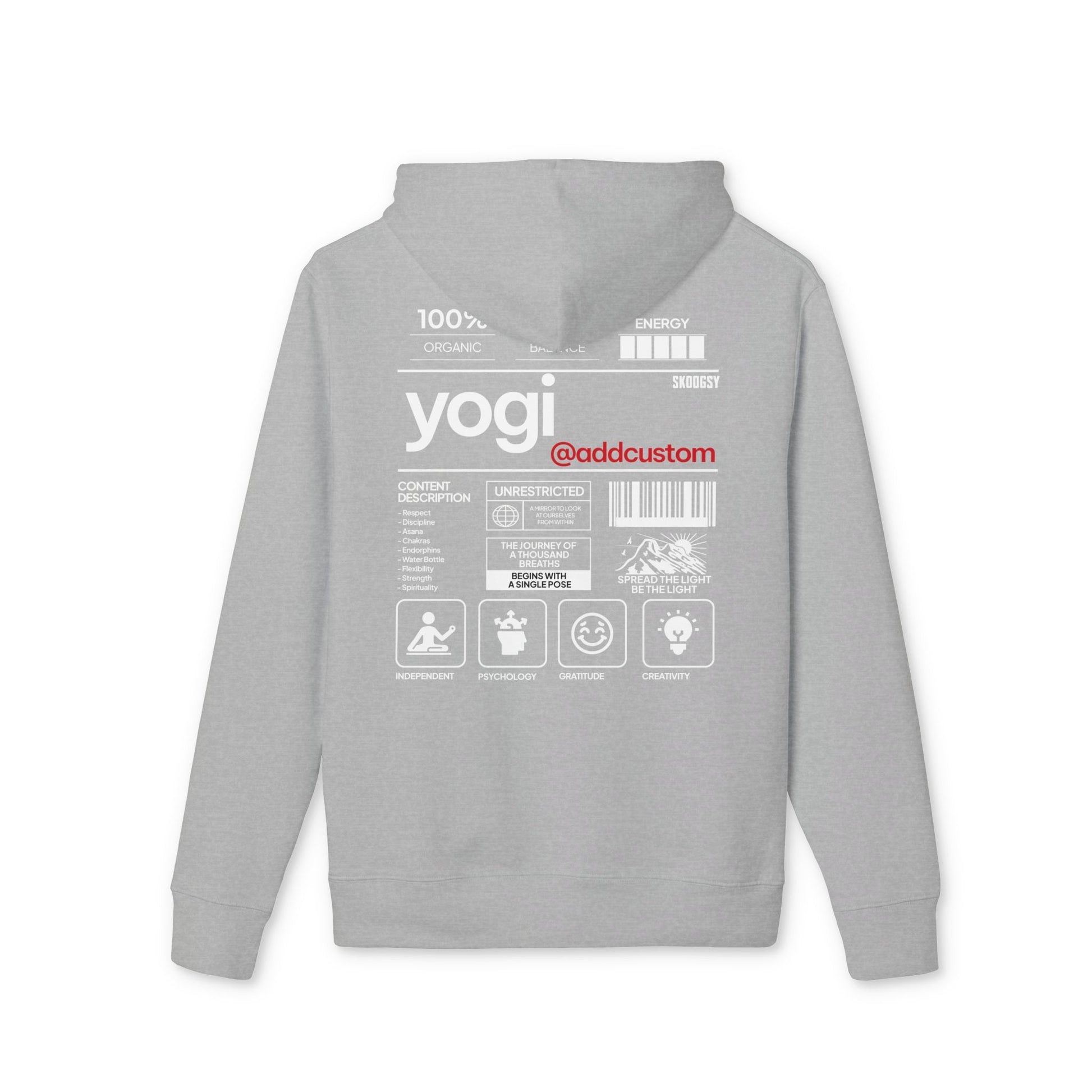 This customizable unisex Hoodie is perfect for yoga practitioners. The yogi back design acts as a poster, featuring ingredients, quotes, energy level, and element details. Made of 100% organic cotton, it offers a soft feel and durability. Ideal for those who love yoga and seek comfortable, stylish activewear. Perfect for yoga classes, meditation sessions, and casual wear.